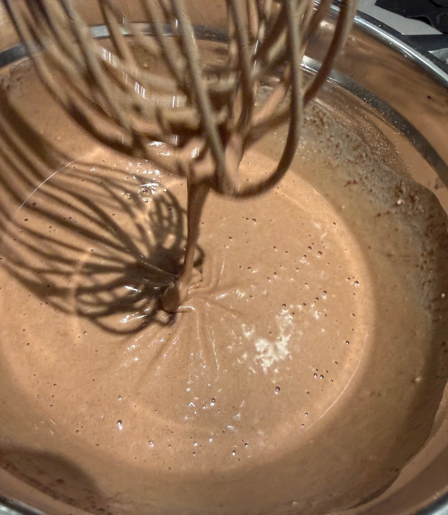 Whisk all that together and voila- the chocolate pancake batter is done.