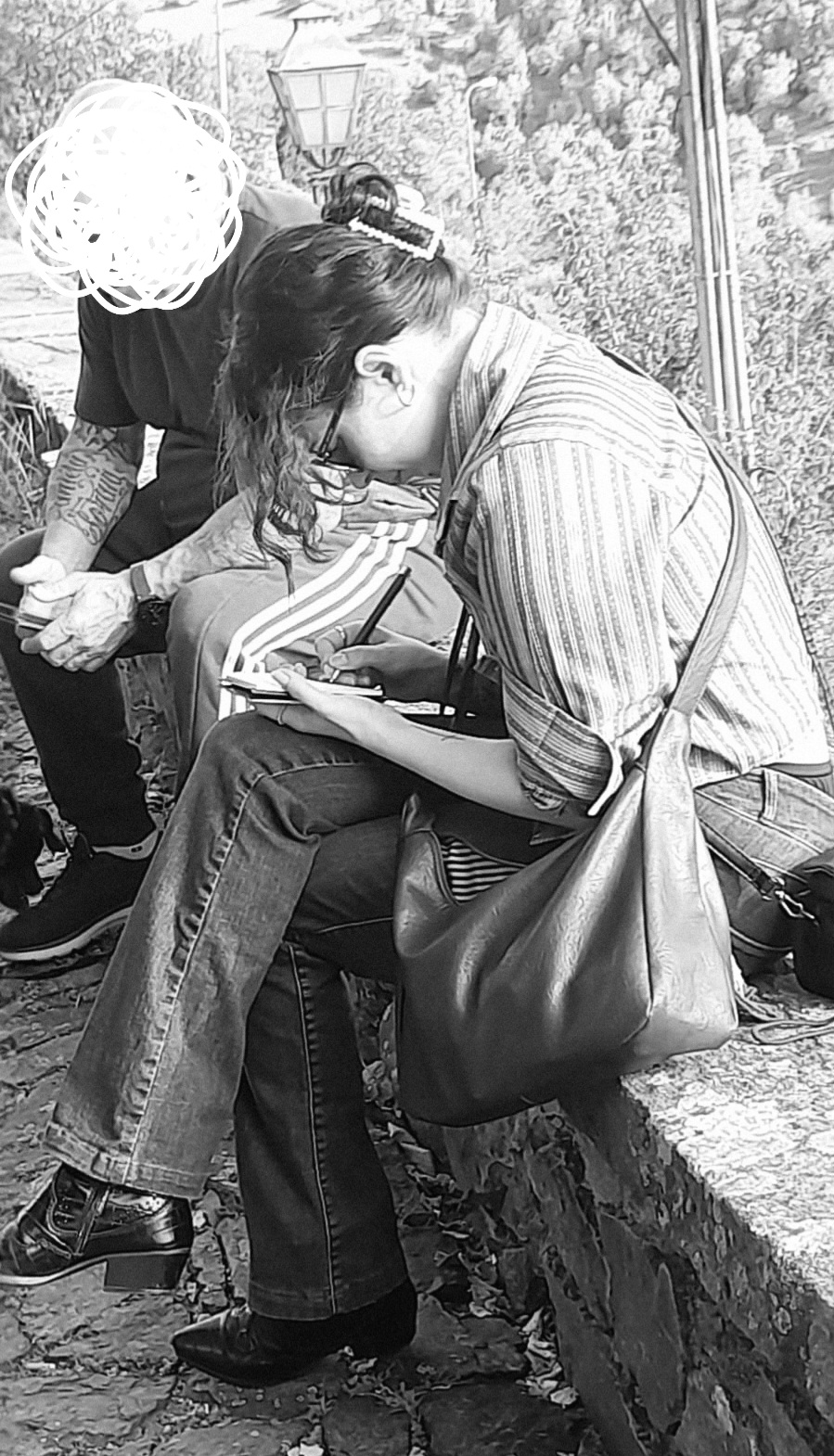 Below is a photo of me drafting it immediately, sitting on a low wall, right outside it: