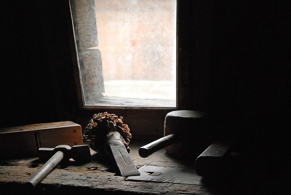 There is no force behind the throws of my hammer against the chisel