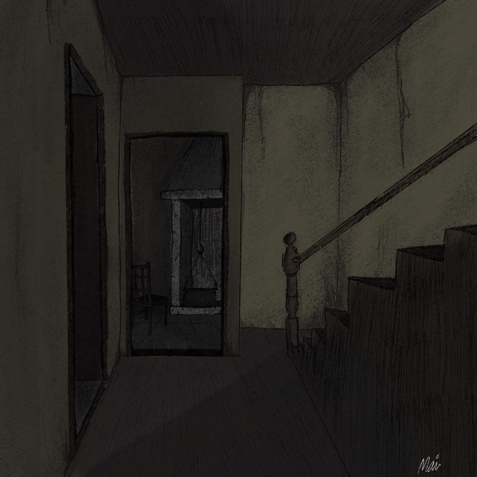 The cold was starting to get slightly unbearable and my skin was forming goosebumps all over. My brother would certainly be cold as well, maybe he had sought shelter in that mansion, so I started going towards the entrance. I knocked on the door, but got no answer. I tried again and nobody came. Finally, I decided to open the door myself and, surprisingly, it opened without any effort at all. The door was clearly very heavy but somehow it felt like I was pushing a cotton ball of some sort. I couldn’t see anything inside, as everything was bathed in complete darkness. I stepped inside and almost immediately the door closed behind me with a soft thud. Surprised, I looked back and when I turned again, the mansion was no longer the place it was before.
