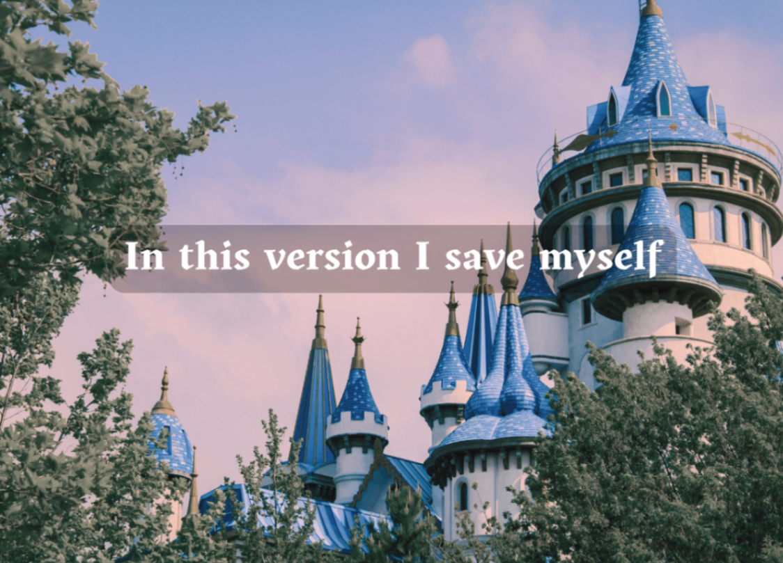 This came from a place of frustration, but also hope. Stories often show a woman suffering or being saved before she is loved, but I saved myself. I left my abuser. I chose (despite how hard it was) to leave, and grieve, and grow, and try again. I wanted a version of a fairytale where they both choose each other, where the story starts after the princess is saved.