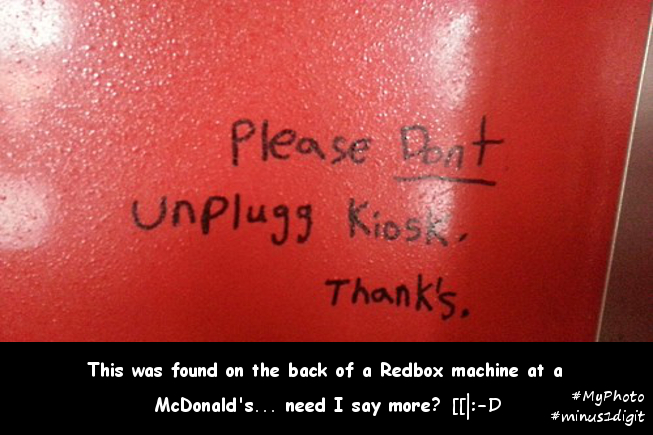 I used the same meme as the banner that I used here. It was the first photo I ever took with my Samsung Galaxy S3 back in the day. I'm really surprised they spelled kiosk correctly….[[|:-D