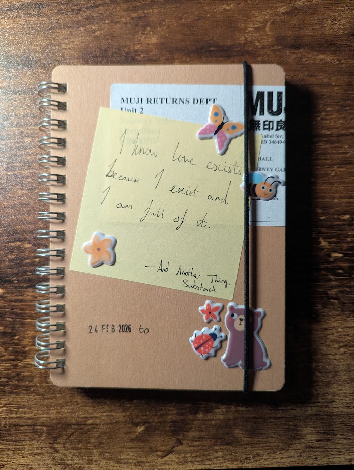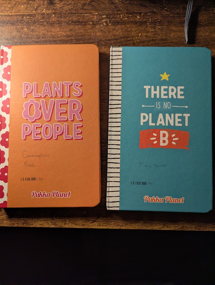 I have 2 cheap Pukka Pad notebooks that I have turned into a commonplace book, where I keep profound and inspirational quotes, and other cool things; as well as a media journal, where I track and write about music, books, TV and films. These notebooks are really just kept for me to have some fun and enjoy the smaller things in life!