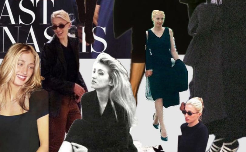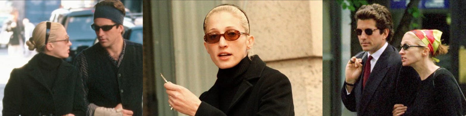 Before “quiet luxury” became a hashtag and before minimalism was bottled and sold back to us, Carolyn lived it. She stepped onto the streets of Manhattan in clean lines and neutral tones, somehow making restraint feel intoxicating. A black slip dress. A sharply cut coat. A pair of narrow sunglasses. Hair parted, however it fell that day, undone, but perfect. That was the formula, and she never over-explained it. (and do not forget her iconic Charles J. Wahba headbands…)