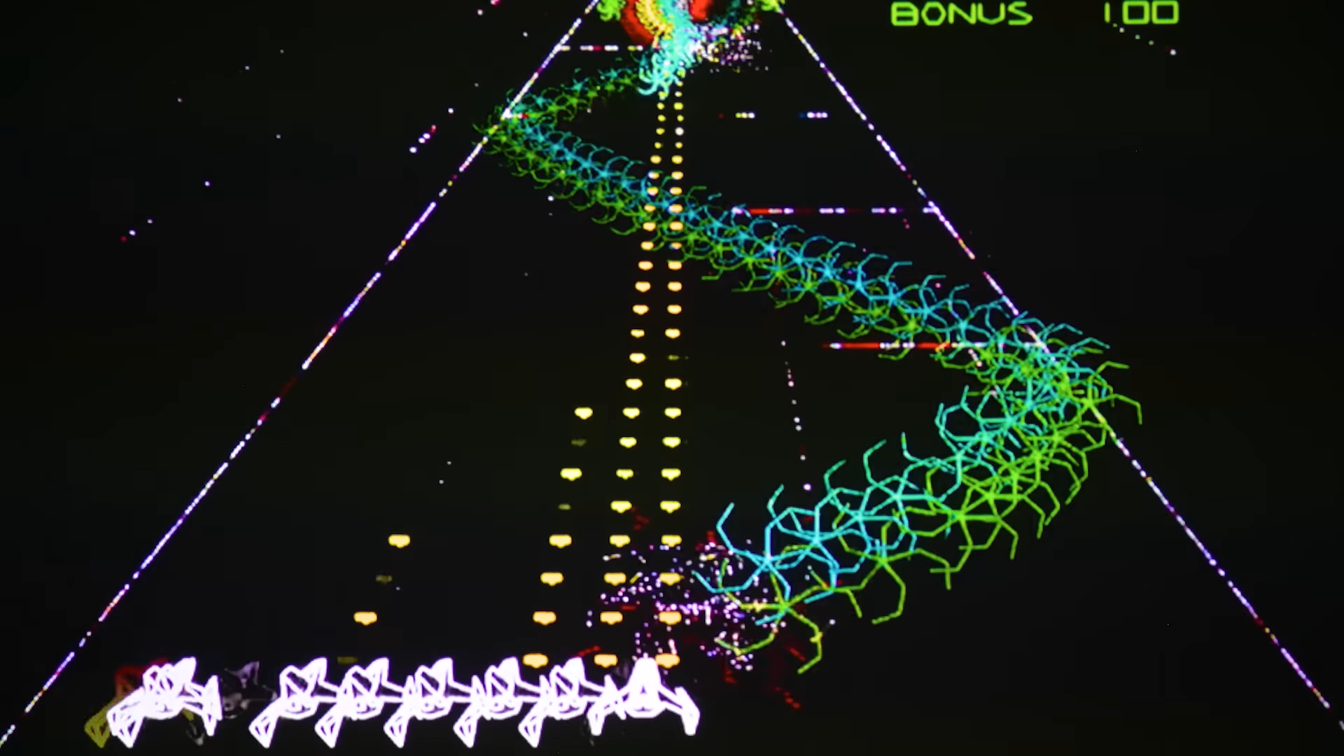 All there is, is the trajectory aimed by his instinct through the chunk-a-chunk mechanism of the gun at the screen and the soft pinging whine of each of the targets being hit and falling.