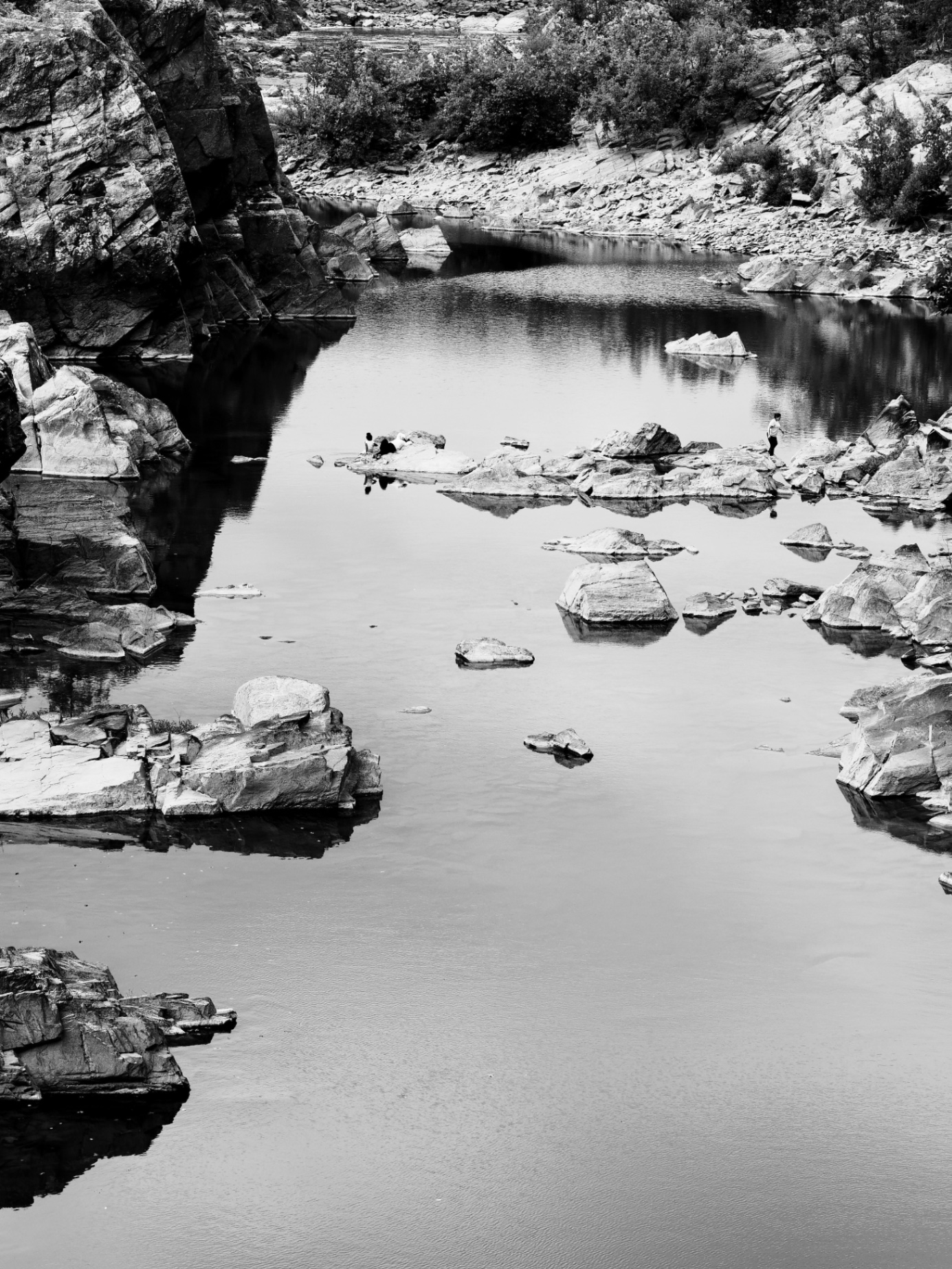 And I sit below, my hired boat guide navigating the shallow and jutting rocks along the narrow river strip. “One step across”, they call this river spot. Behind me, it is only as wide as one tall person stretching. We are at the end of a split branch of China’s Great Wall, where its ancient stone blocks crumble into the water.