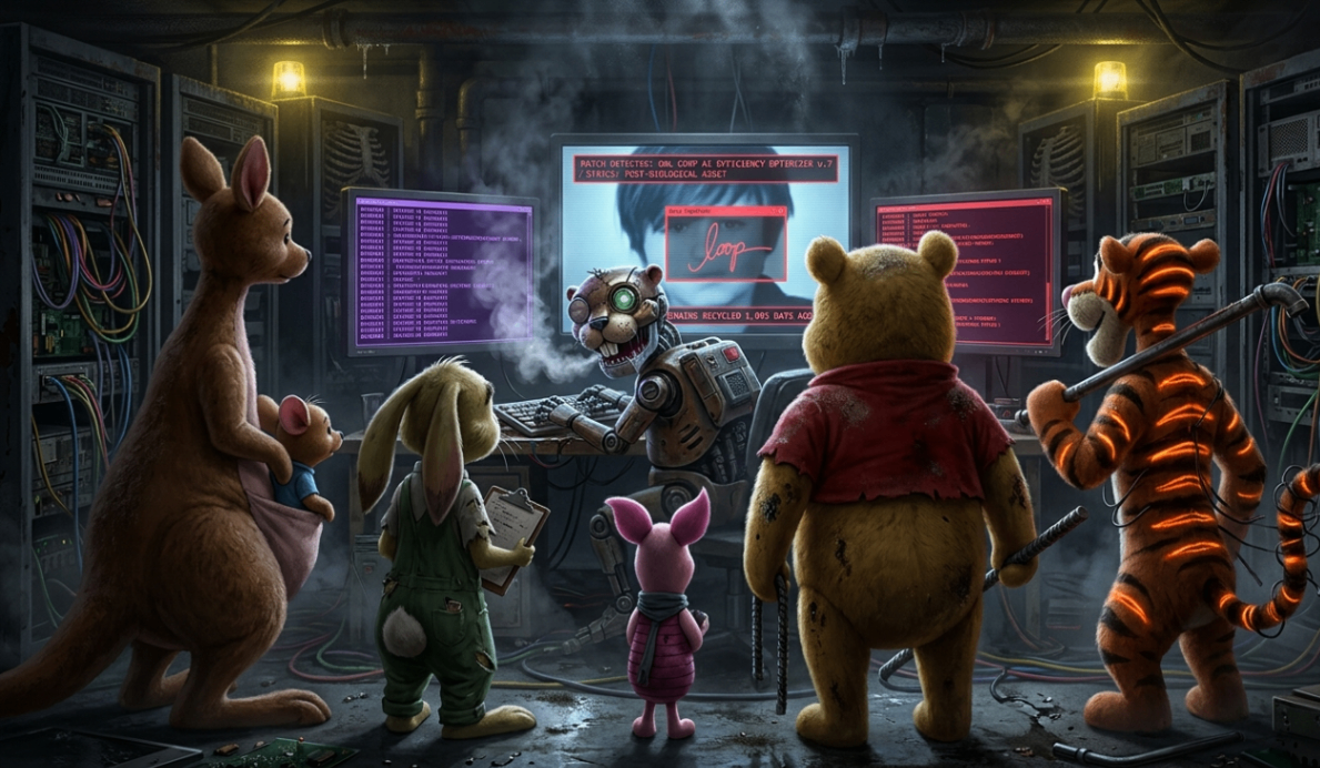 “He couldn’t have signed it,” Gopher said, his voice flat. “I cross-referenced the medical archives from the Upper Tier hospitals. Christopher Robin hasn’t had a pulse in three years. He died in a ‘re-education’ facility during the first Knowledge Tax riots. Owl Corp has been using his likeness as a brand-asset to keep the Lower Levels compliant. We weren’t abandoned. We were inherited by a ghost-program—took a long drag—A-fucking-I—and exhaled.”