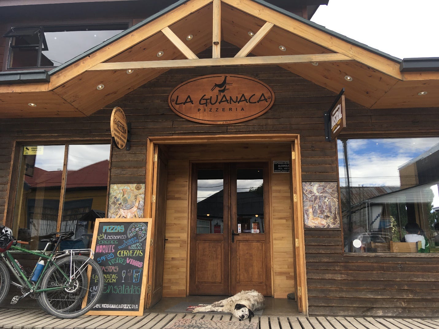 And here’s where you get the best pizza in Puerto Natales, complete with sleeping dog.