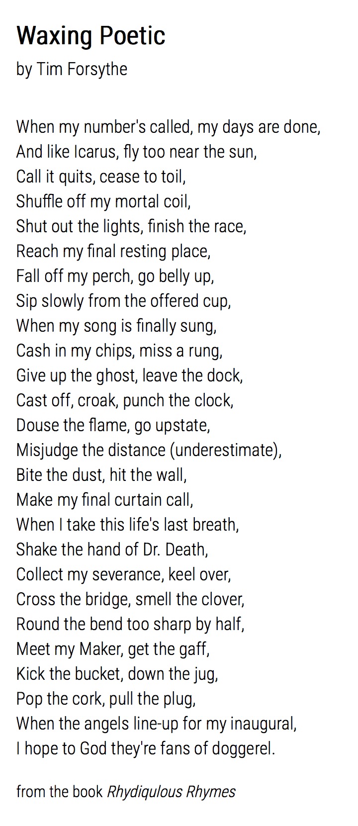 ← BackWaxing Poetic | PoemWhen I take this life’s last breathTim ForsytheMar 13, 2026 · 1 min readGet the BookIf you liked this poem, repost it, it don’t cost nothin’.2SaveComment