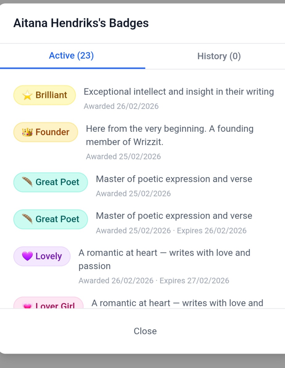 I have a Brilliant Badge!? Someone thinks I have exceptional intellect and insight in my writing? Oh, you are a treasure! x