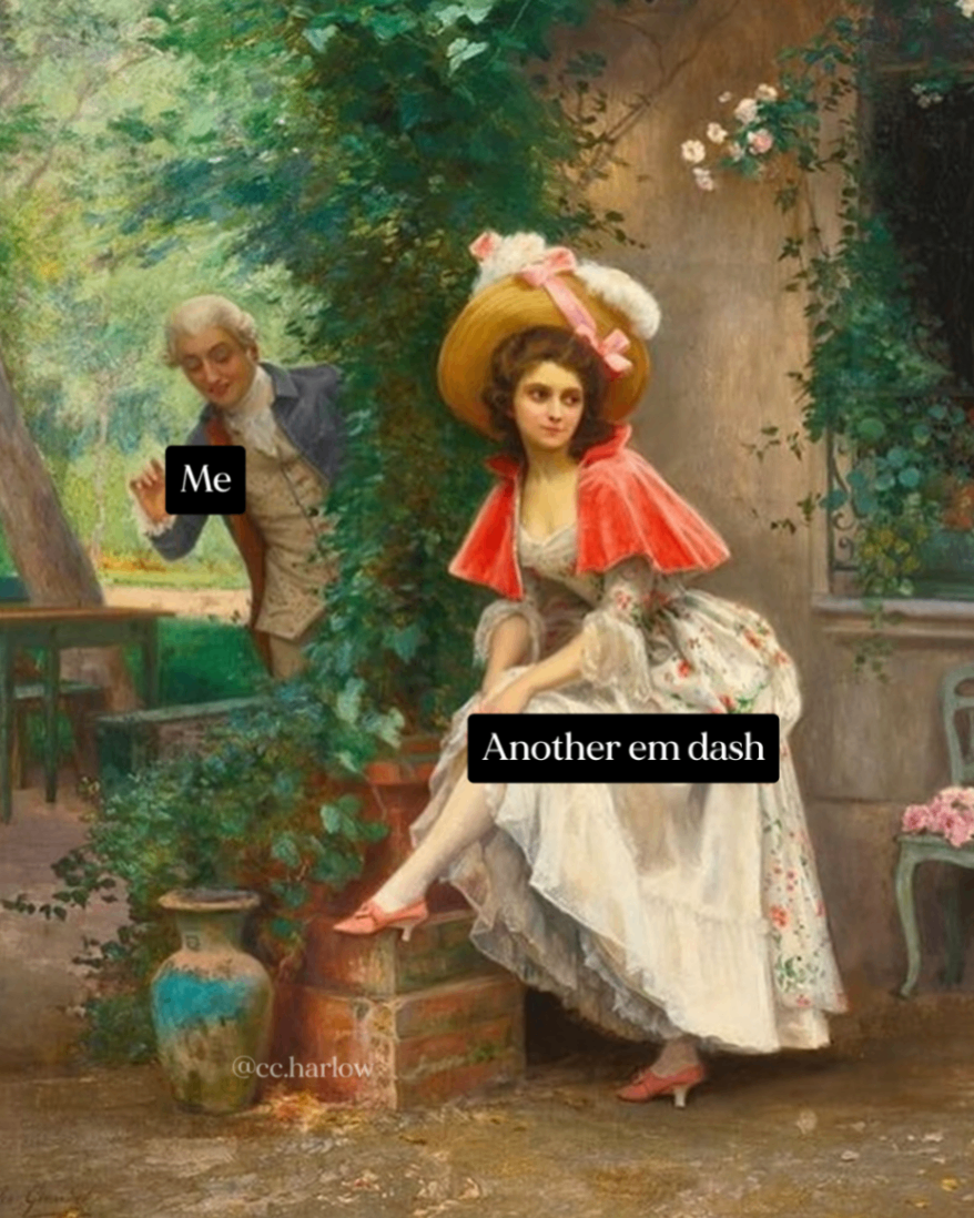 I agree with the sentiment. I'm not a big fan of the witch hunt, to be honest. People now judge pieces through vibes only and not hard evidence that this is AI. Even the AI detectors are faulty. I use em dashes. I don't use AI to write my stuff for me. I don't believe in the so-called "telltale" signs of AI. It's just vibe checks, nothing scientific.