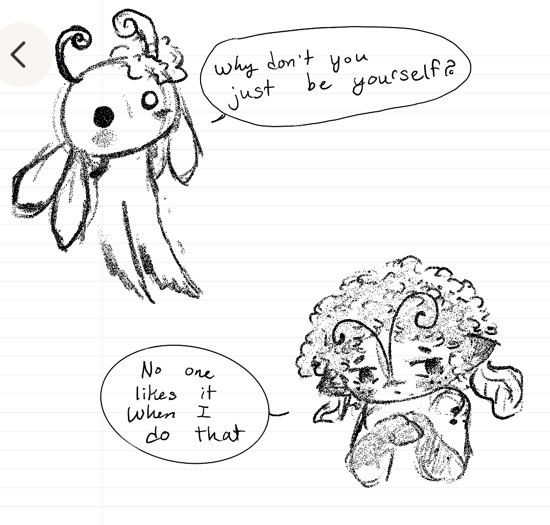 !! That one is an ancient fungal being, who used to live in a fluid mush with all the others of its kind. They're like living archives, each identity nothing more than an organizational tool to store memories of other beings, not an original thought among them.They fuse and separate as they please, reorganizing themselves constantly... until an incident, and now the archives are dying, and this one here must learn to have ~ an original thought ~ to escape their dying world with the last memories