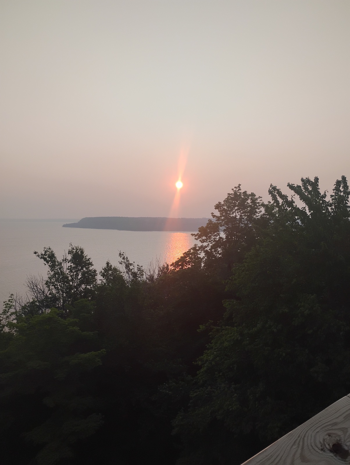 Sunrise at Peninsula State Park, Fish Creek WI 2025. The wildfires wreaked havoc on Canada and the smoke travelled south. This is what sunrises were like in the upper Midwest