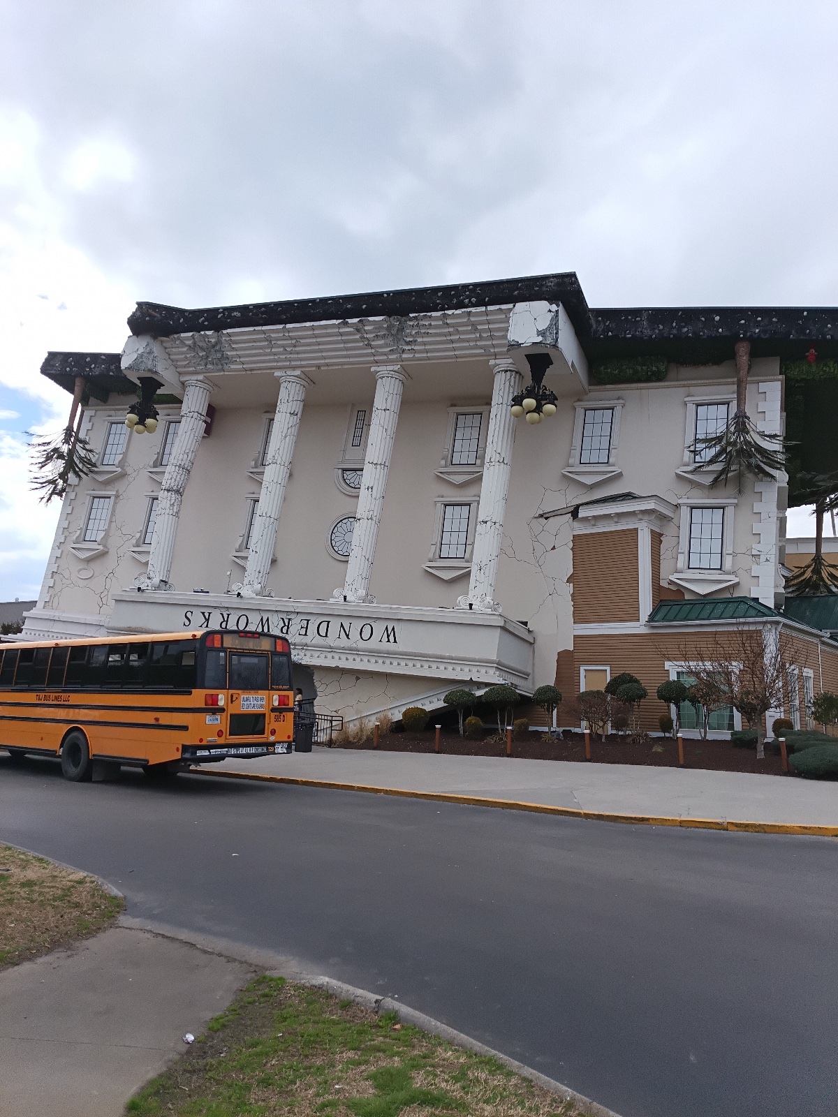Your mind is not playing tricks on you. Yes, this building is upside down. This is in Pigeon Forge, TN March 2026. Weird cool crazy science shit is inside.