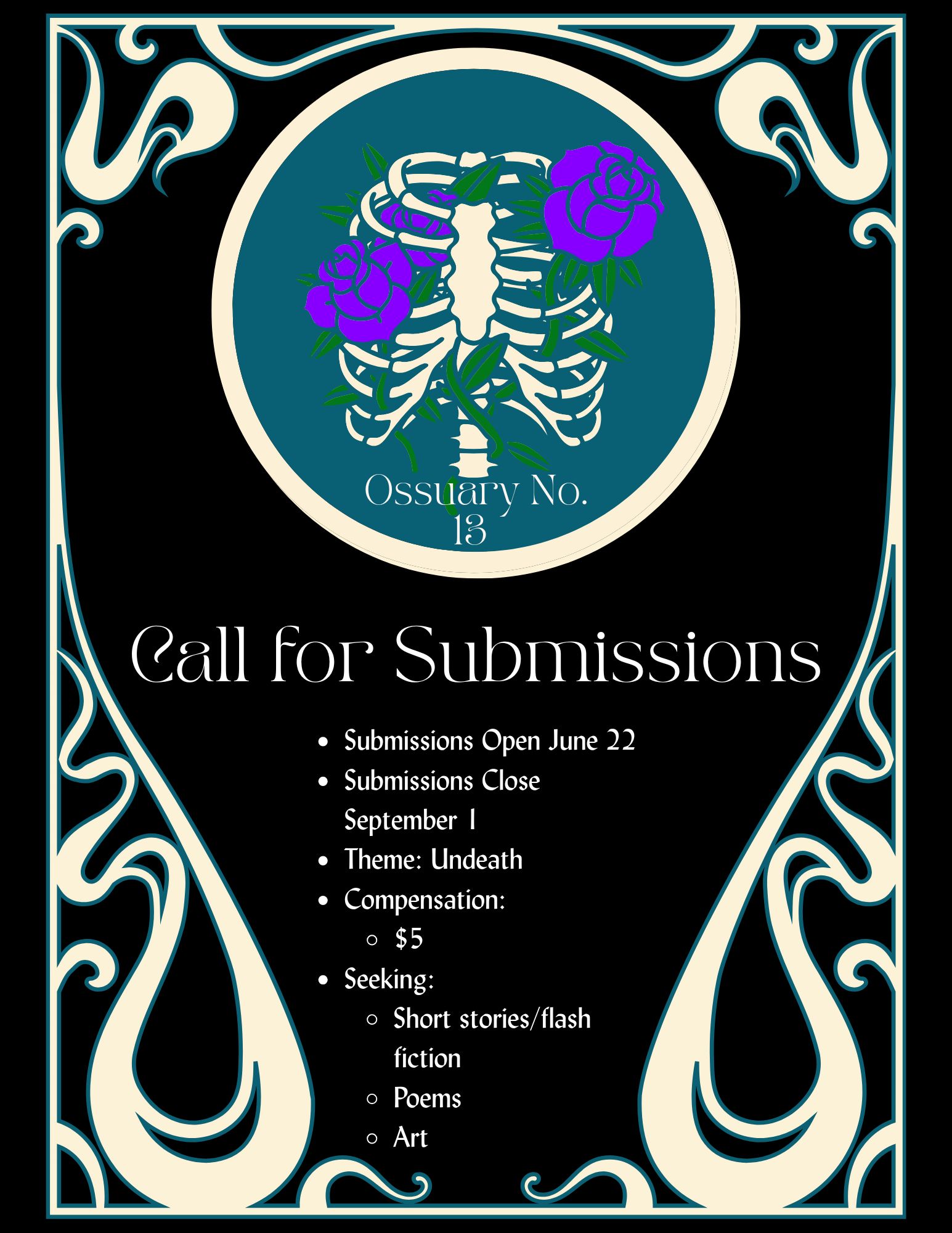 Well, it's mostly official. Ossuary No. 13 is going to be a thing. It's a print-only horror zine, and the first issue will come out September 22. We officially start accepting submissions on June 22, but there's a soft open with an early call for subs if you're interested.