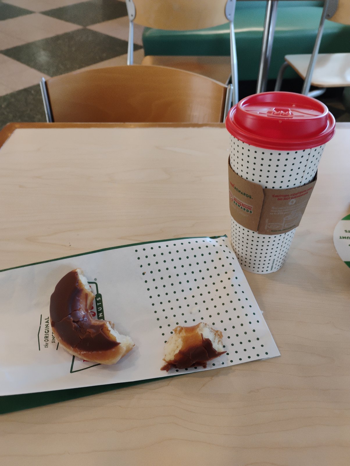 Well, I'm up early again, although this time my bladder woke me up. Having Krispy Kreme this morning, and the clerk, who's used to vagabonds, gave me a free glazed that was hot off the rollers. Plus, their coffee is so much better than McDonald's. It's looking like another nice day, weather-wise....[[|:-)