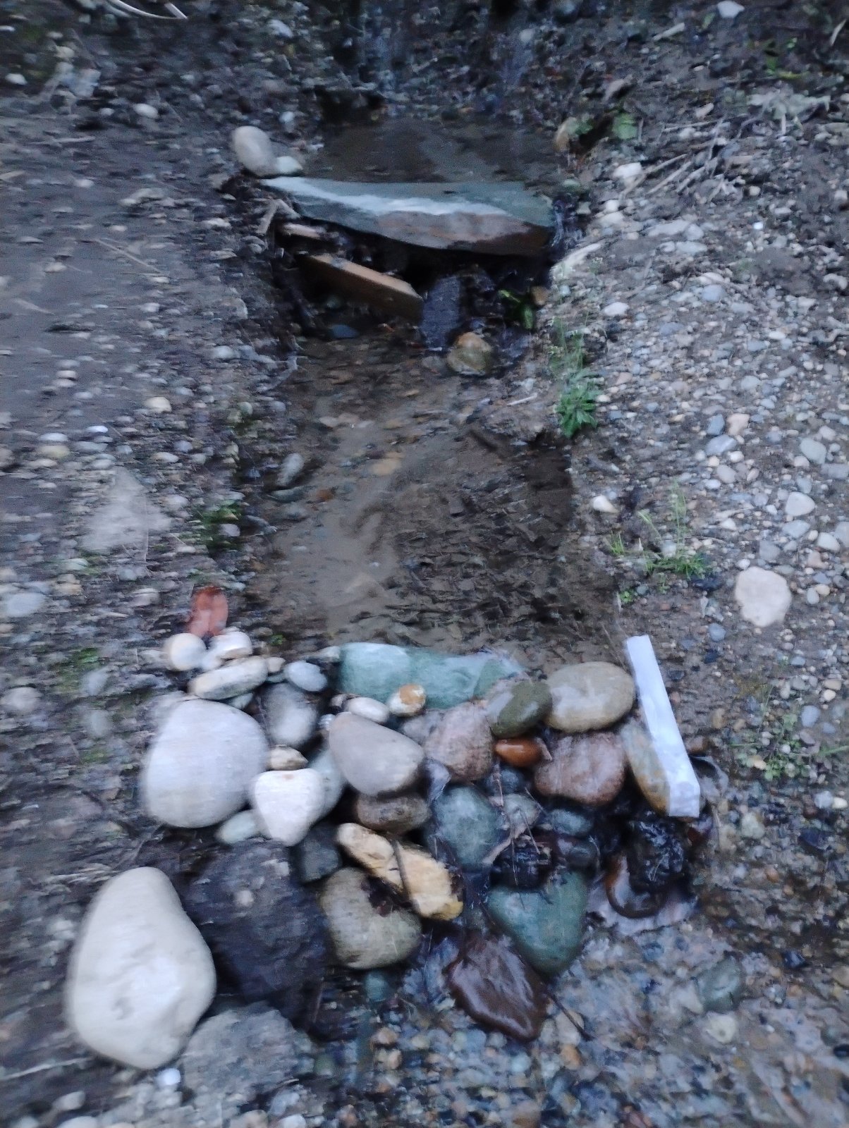 So, I have a story to tell as you look at the new and improved waterfall. Just as I was about to lay in my tent and watch a video before I sleep, I was visited by two... let's say, semi-functional tweakers. They were very nice, and not needing for anything except the running water, which turns out that the last encampment here that got busted, somehow tapped the water main to create what Lorelei said was a bigger waterfall before. She wanted to wash her hair even though it was cold. Her man went on a mission to stash something in the cemetery, and her and I talked while she used their emergency shovel to dig out the waterfall and place more rocks. We actually talked about all kinds of things from a bit about ourselves before homelessness, on to spiritual quantum physics. I think I convinced her that she's a somatic empath like me. I'm not trying to defend their lifestyle, but they came and left and even shared a joint and unloaded their pennies onto me....[[|:-)